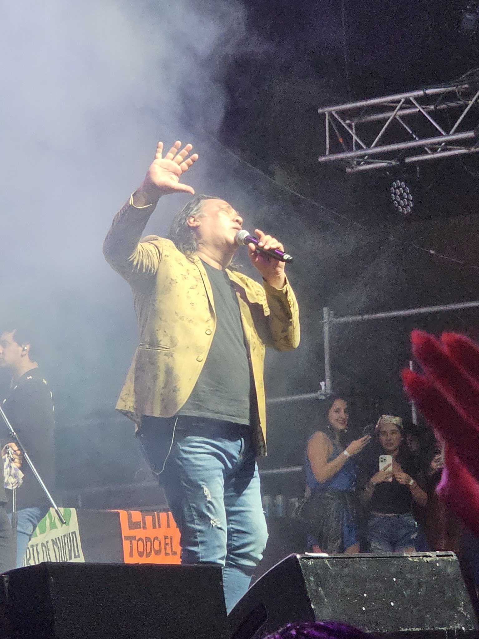 Lindos momentos fueron las canciones que compartió con la Pepa Brizuela o Joaco de DesaKTa2, que si bien son de otro palo de la música, se las ingenia para entretener al público, ya lo ha dicho el no tiene interés en hacer colaboraciones que están tan de boga por estos días, él dice que ya lo hace desde antes compartiendo escenario con músicos de otras ramas.