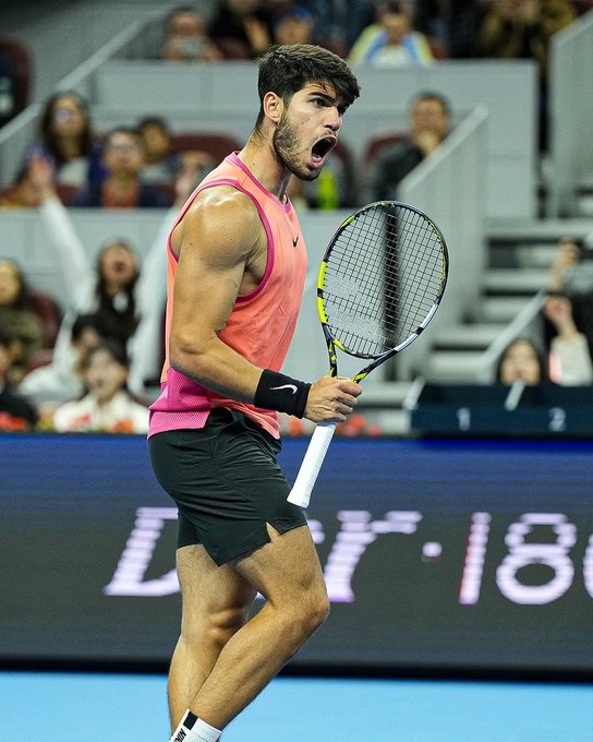 El joven tenista español Carlos #Alcaraz conquistó el #ChinaOpen tras superar en la final de #Pekín al número uno mundial, el italiano Jannik #Sinner, por 6-7(6), 6-4 y 7-6(3). Con este título «Carlitos» sumó su trofeo N° 16 en la vitrina.