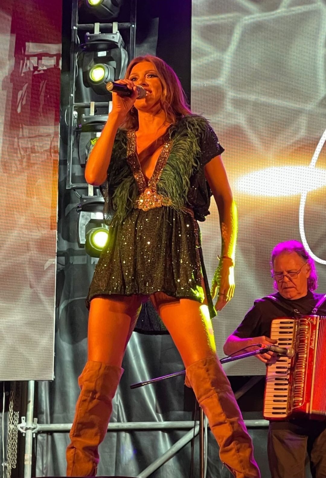 La artista cordobesa, dueña de una vasta trayectoria y que se hizo conocida a nivel nacional tras su participación en el programa televisivo “Showmatch”, fue el número destacado de la velada en el Predio de Colectividades, ubicado en la avenida Hipólito Yrigoyen 532.
