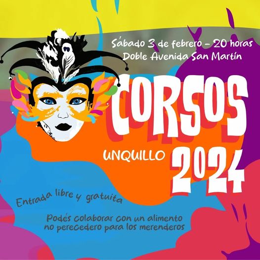 Cabe recordar que durante esta edición 86 de los Corsos de Unquillo la doble avenida San Martín contará con espectáculos artísticos, intervenciones callejeras y desfile de Murgas. En tanto, sobre calle Juan XXIII se ubicará la Feria de Artesanías, a la vez que habrá otros puntos con propuestas gastronómicas, Punto Joven y Punto Mujer.