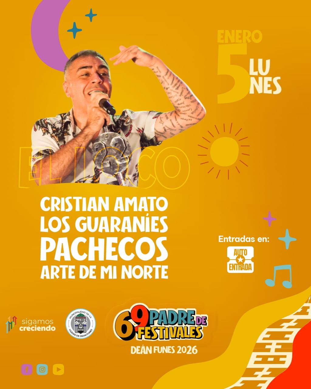 Lunes 5 de enero 2026: Cristian “El Loco” Amato (gran cierre), Los Guaraníes, Pachecos y Arte de Mi Norte.