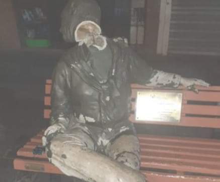 La escultura fue hecha por Trinidad Caminos para el “Circuito de Estatuas de Personalidades de Córdoba”, y la verdad que estaba en un estado deplorable, semi descascarada y con dedos faltantes. Ahora que se llegó a este nivel de violencia contra el monumento la Municipalidad asegura que va a restaurarla.