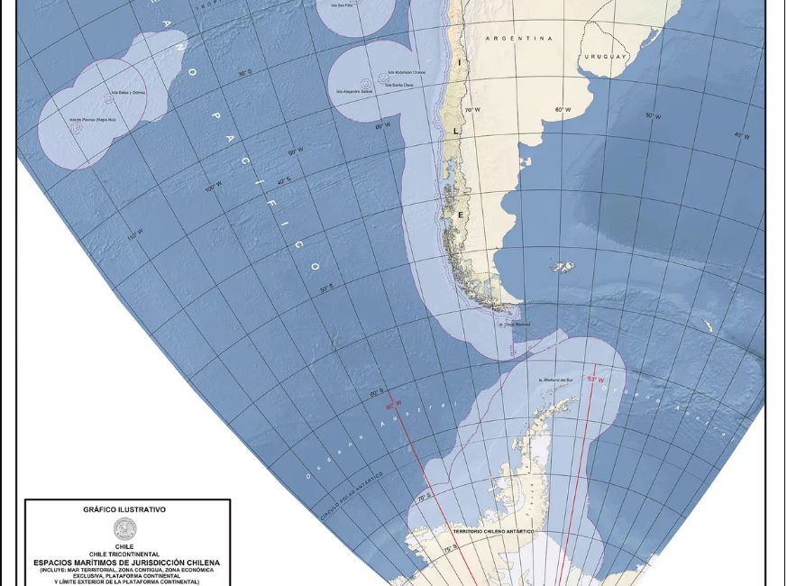 “Es la actualización de los límites exteriores de los espacios marítimos chilenos conforme con el Derecho del Mar. En lo que se refiere específicamente de la plataforma continental del Cabo de Hornos, es exactamente eso. Este mapa no se había actualizado y a la luz del fallo entre Colombia y Nicaragua, a propósito de la plataforma continental en la que la Corte Internacional de Justicia estableció que la plataforma continental de 200 millas existe per se, a la Armada y el Estado le pareció conveniente actualizar eso y es lo que ilustra el mapa oficial”.