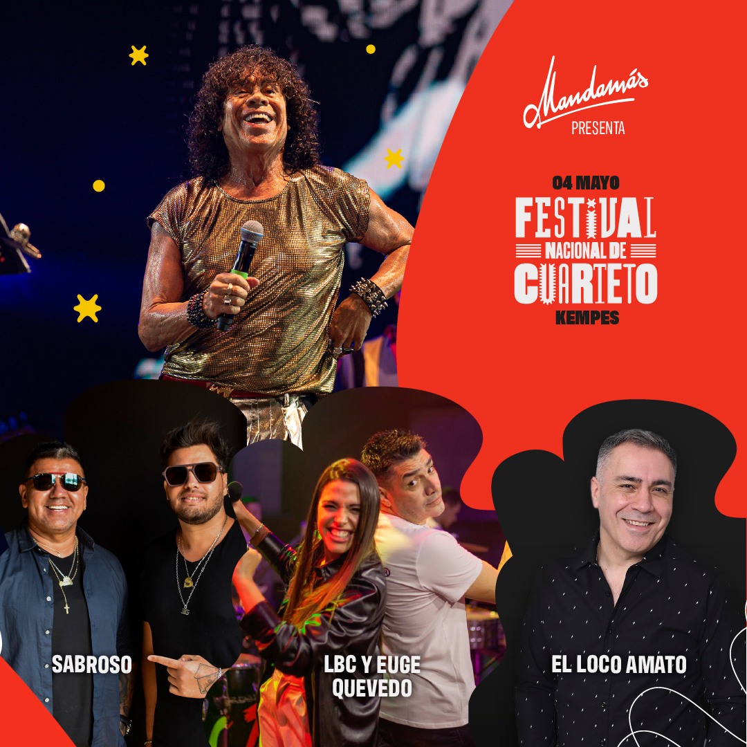 Este sábado 4 de mayo llega el #FestivalNacionaldelCuarteto que propone 12 horas ininterrumpidas de «tunga tunga» con algunos de los principales referentes del género cordobés: La Mona Jiménez, Sabroso, LBC y Euge Quevedo, El Loco Amato, Damián Córdoba, Magui Olave, y varios más.