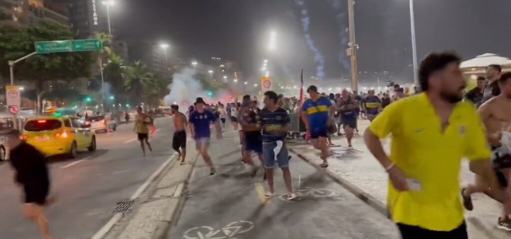 Barras del #Fluminense realizaron una emboscada contra los hinchas de #Boca en la playa de #Copacabana que terminó con una represión policial a dos días de la final de la #CopaLibertadores 2023.