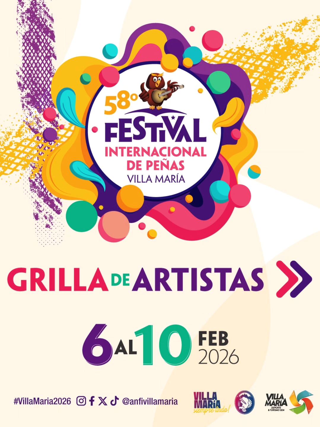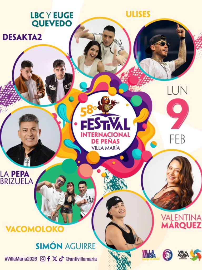 #FestivalDeVillaMaria #VillaMaria #MusicaEnVivo #Folklore #Cuarteto #PopLatino #Cumbia #AbelPintos #FitoPáez #Morat #LucianoPereyra #LaJoaqui #FestivalDePeñas #Cultura #VillaMaria #Argentina #EntradasYa #Verano2026 #LaPepaBrizuela #MúsicaParaTodos