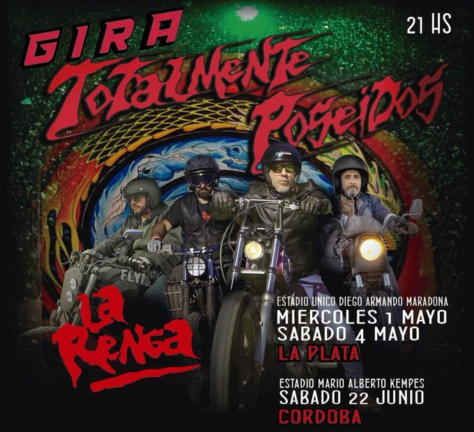 La icónica banda de rock #LaRenga vuelve a #Córdoba, tocará en el estadio Mario Alberto Kempes el sábado 22 de junio, en el marco de la «Gira Totalmente Poseídos». Además están presentando su primera película documental basada en la vuelta a los escenarios en 2022.