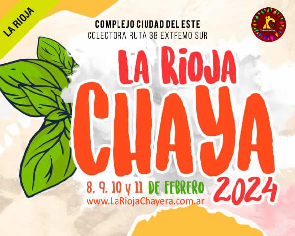 La Rioja #Chaya se realizará del 8 al 11 de febrero en el Complejo Ciudad del Este con las actuaciones de El Indio Lucio Rojas, El Chaqueño Palavecino, Néstor Garnica, La Barra, Ahyre, Dale Q Va, Sergio Galleguillo, La Konga y Luciano Pereyra, entre otros.