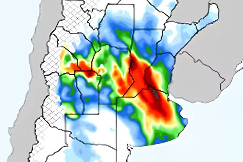 El SMN estima valores de precipitación acumulada entre 20 y 120 mm, aunque en algunas regiones podrían superarse los 150 mm, con focos de tormentas muy intensas. Las áreas más afectadas podrían ser el centro y sur de Córdoba, Mendoza, San Luis, el norte de La Pampa, el sur de Santa Fe y el noroeste bonaerense.