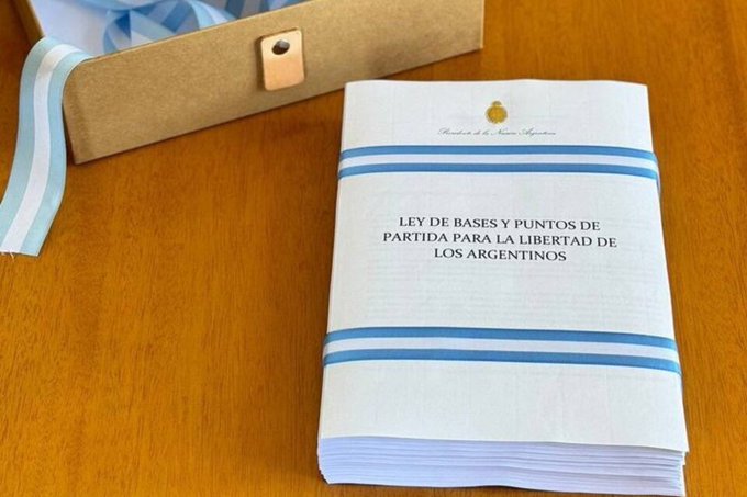 La Ley Bases que incluye una regresiva reforma laboral, facultades extraordinarias para eliminar organismos públicos, la privatización de ocho empresas públicas y un régimen de inversiones con beneficios exorbitantes para las empresas multinacionales. Fue sancionada con el respaldo del PRO, el radicalismo, Hacemos Coalición Federal y gran parte de las fuerzas provinciales.