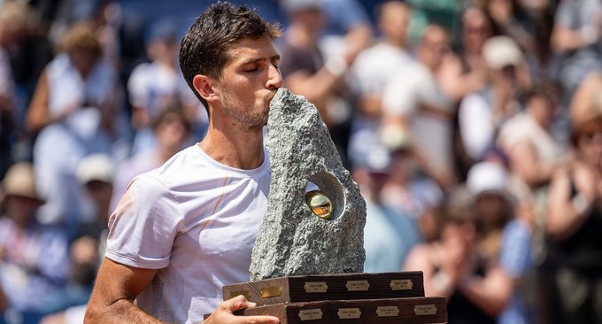 El tenista cordobés Pedro #Cachin campeón en #Gstaad, Suiza. A los 28 años el bellvillense ganó su primer título ATP, superó al español Albert #Ramos Viñolas por 3-6 6-0 y 7-5, será Top 50. El de Cachin es el título individual de ATP número 230 en la historia del tenis argentino.