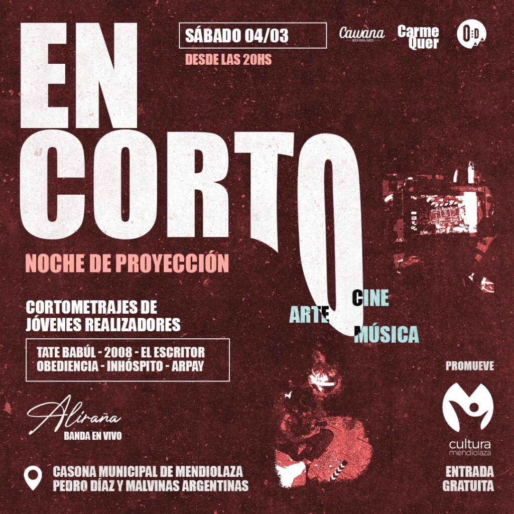 Una noche de proyección de cortometrajes, realizados por jóvenes estudiantes de cine de la UNC y con la apertura de la noche a cargo de Alirania, una hermosa banda de Unquillo que nos va a regalar un cálido y místico clima para disfrutar la velada.