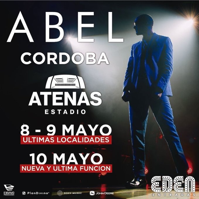 Nueva fecha de #AbelPintos en #Córdoba. El club #Atenas inaugurará oficialmente el estadio, luego de tantos años en construcción, y lo hará con una serie de shows de uno de los artistas más populares de Argentina, los próximos 8, 9 y 10 (nueva y última función) de mayo.