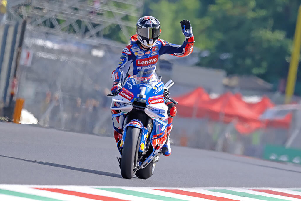 El piloto italiano Francesco #Bagnaia (#Ducati) logró la victoria en la carrera larga de #MotoGP del #ItalianGP , 7ma prueba del Mundial. Enea #Bastianini con una gran última vuelta pasando a #MarcMárquez y a Jorge #Martin para robarle el 2o escalón del podio en la última curva.