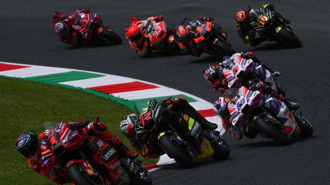 Francesco «Pecco» #Bagnaia se quedó con el sprint race del Gran Premio de Italia de #MotoGP en el circuito de #Mugello, con dominio total de #Ducati que conquistó las cinco primeras posiciones. Tercera victoria de la temporada para el italiano en las carreras al esprint.