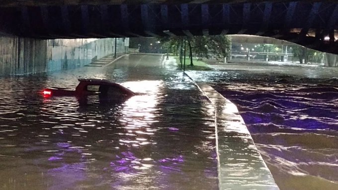 Un conductor quedó atrapado en la costanera de la ciudad de Córdoba en medio de la creciente del río Suquía. Se trasladaba a bordo de una camioneta que terminó totalmente sumergida a la altura del Puente Bicentenario.
