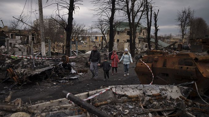 «Cuando liberamos Bucha vimos que el diablo había llegado a la tierra. La terrible verdad sobre lo que sucedió en los territorios temporalmente ocupados fue revelada al mundo», declaró el presidente ucraniano, Volodímir Zelenski, quien visitó hoy la localidad junto a cuatro mandatarios europeos.