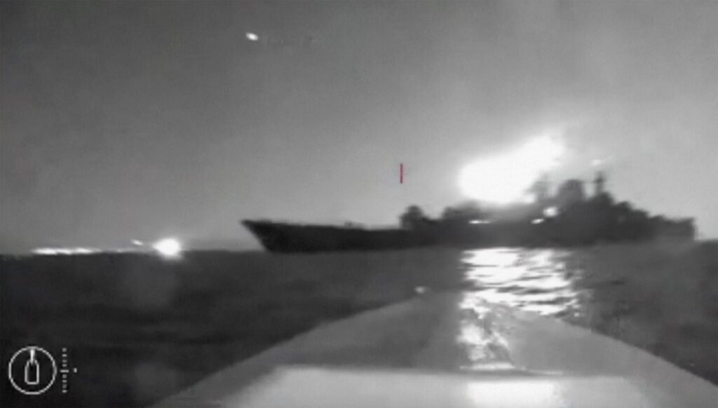 “Como resultado de los impactos directos”, dice el comunicado del GUR, “el barco ruso sufrió daños” que provocaron su hundimiento.