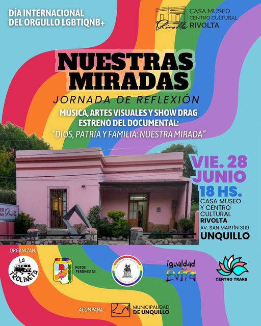 Este viernes 28 de junio Unquillo celebrará el #DíaDelOrgullo con proyecciones, la presentación de un micro-documental, galería de muestra de arte #LGBT, música, Dj, dragqueens, maquillaje y bodypaint. Desde las 18 hs en Museo Rivolta (San Martín 3119).