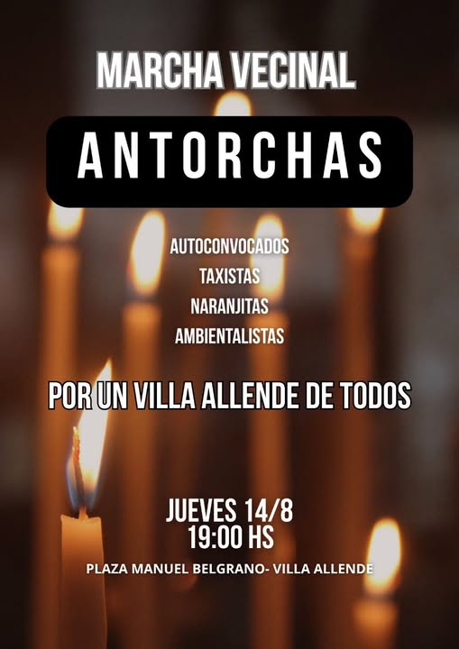 Una creciente ola de indignación vecinal estalla en Villa Allende. Este jueves 14 de agosto a las 19:00, vecinos autoconvocados se movilizarán con antorchas desde Plaza Manuel Belgrano hasta la Municipalidad, en una marcha que promete ser mucho más que una protesta: será un grito colectivo contra el cierre de calles, la impunidad del Ejecutivo y la política del portón.